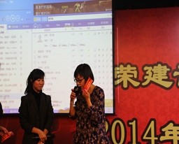 | 宴會(huì)開席前徐董事長為公司先進(jìn)員工頒獎(jiǎng) | 宴會(huì)抽獎(jiǎng)活動(dòng)中,中獎(jiǎng)員工上臺(tái)領(lǐng)獎(jiǎng) |