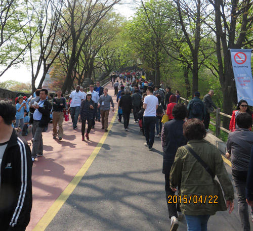 美味的用餐后,稍作休息我們繼續(xù)前往《星你》的拍攝地——南山公園、首爾塔以及愛情鎖墻。位于首爾市中心的南山公園,樹林繁茂,是個適合散步的好地方。公園內(nèi)有八角亭和朝鮮時代的烽火臺,以及可俯瞰首爾市區(qū)的首爾塔,風(fēng)景非常優(yōu)美。