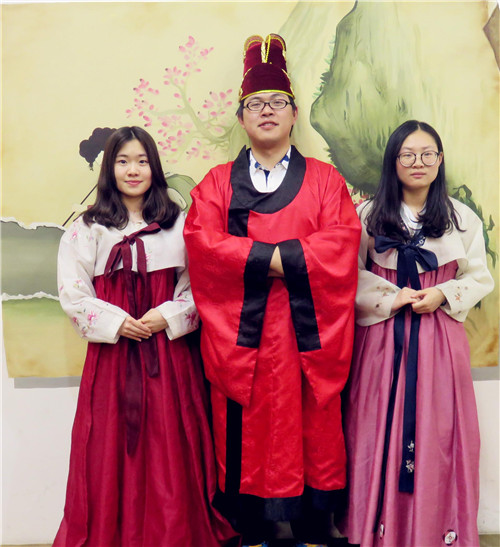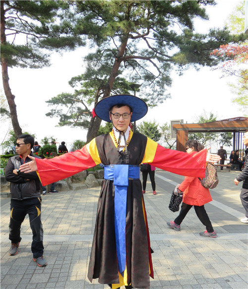隨后體驗傳統(tǒng)韓服。大家換上了韓國古代傳統(tǒng)的禮服,就像最佳男女主角,站立于古色古香的傳統(tǒng)韓屋式場景內(nèi),捕捉各種美麗的倩影。