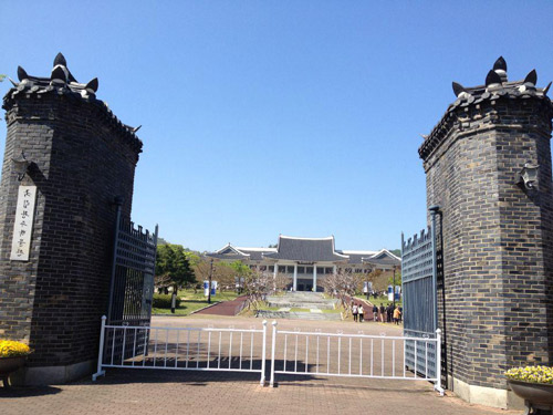 第五天,我們前去了土產(chǎn)雜貨店,選購韓國著名泡菜等當(dāng)?shù)孛a(chǎn)饋贈親友。隨后到達光州國立博物館。為了振興發(fā)展韓國文化藝術(shù)和提高國民素質(zhì),韓國政府于1977年開始建造國立光州博物館,1978年12月6日正式開館。按照韓國傳統(tǒng)樣式建立的國立光州博物館規(guī)模為地上2層、地下4層,面積達3305平方米,包括展覽室、文物保管設(shè)施和室外展覽場等設(shè)施。