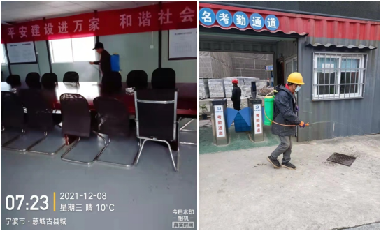 作為人流量較大、人員聚集度較高的施工項目是疫情防控的重點之一、難點之一。大榮集團公司要求各個項目部以“寧可十防九空、不可失防萬一”高度戒備狀態(tài),做好疫情防控工作。一是全力做好防疫物資儲備及消殺工作。充足的口罩、消毒液、紅外測溫儀、一次性手套等防疫用品,為打贏防疫阻擊戰(zhàn)做好充分地物資準備。每天定時對項目部辦公樓、民工宿舍、食堂等區(qū)域進行消毒殺菌。