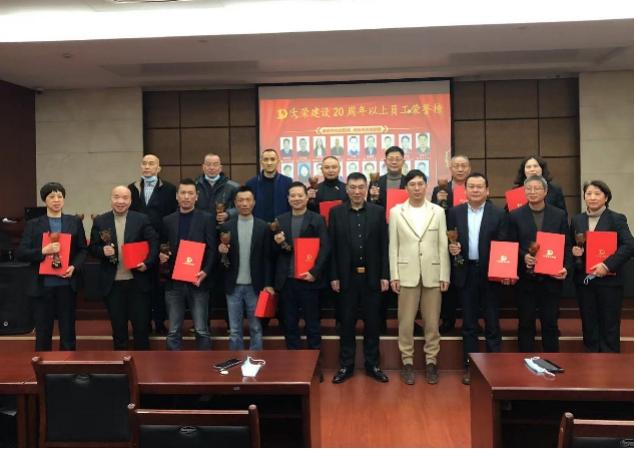 會上,首先由集團公司總經(jīng)理徐曉磊宣讀關(guān)于李天宇等同志任職的通知。集團黨支部書記徐新強宣讀表彰2021年度優(yōu)秀員工和司齡20周年及以上的決定,由集團公司董事長徐正榮和總經(jīng)理徐曉磊頒發(fā)榮譽獎杯、證書和獎金并合影留念。