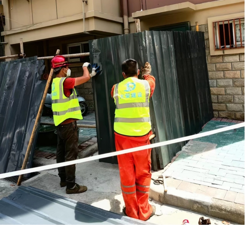8月22日,寧波新增1例新冠肺炎確診病例,系省外返甬人員在高速卡口核酸檢測“愿檢盡檢”中發(fā)現(xiàn)。在接到區(qū)住建局疫情防控緊急通知后,大榮建設(shè)應(yīng)急小分隊(duì)迅速集合、立即行動,積極投身抗疫“主戰(zhàn)場”—東興社區(qū),爭分奪秒完成封控區(qū)部分區(qū)域的防疫隔離圍擋,筑牢抗“疫”攻堅(jiān)的鋼鐵長城。