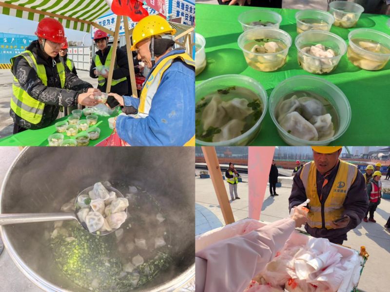 現(xiàn)場一片歡聲笑語,工人們吃著熱騰騰的餃子,拎著新年禮盒和“福”字,“一吃餃子,有種家的味道,年的味道,感謝組織的關(guān)心”,項(xiàng)目部一個(gè)木工師傅邊吃著餃子邊說。小小的愛心餃子,融化了寒意,溫暖了冬天,傳遞的是關(guān)愛,體會的是溫情,更溫暖了整個(gè)項(xiàng)目工地。
