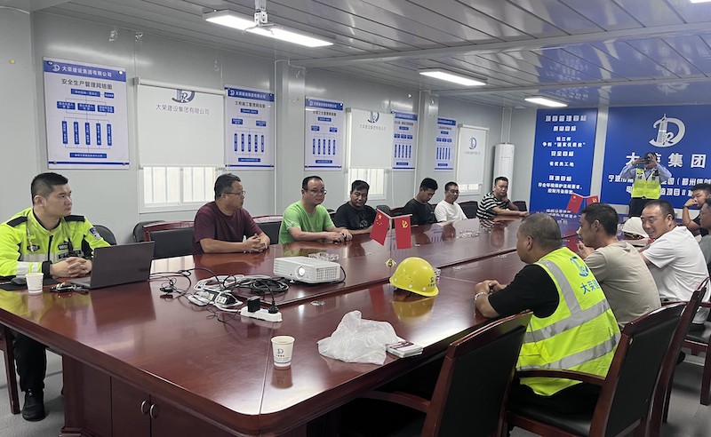 為加強項目工人出行安全意識,提高守法意識,確保工人在上、下班路途中的交通安全,創(chuàng)造和諧穩(wěn)定的交通環(huán)境。6月25日下午,寧波市公安局交通警察局鄞州大隊城區(qū)一中隊走進甬江軟件產(chǎn)業(yè)園項目現(xiàn)場,為項目部30余名管理人員及工人開展道路交通安全宣傳。