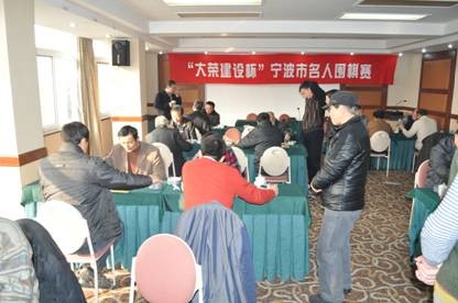 由市、區(qū)兩級圍棋協(xié)會、大榮建設(shè)集團(tuán)有限公司聯(lián)合舉辦的“大榮建設(shè)杯”寧波市名人圍棋賽于2012年2月23日上午在甬港飯店舉行。