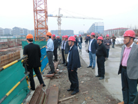 2013月10月18日下午,寧波市住建委楊馥源副主任一行來(lái)到我公司承建的寧波江北洪塘舊宅徐拆遷安置小區(qū)二標(biāo)工地進(jìn)行特大臺(tái)風(fēng)“菲特”過(guò)后的汛后督查。 一到工地,楊主任就先來(lái)到施工現(xiàn)場(chǎng),看到工地上民工兄弟們包模板的包模板,扎鋼筋的扎鋼筋,正如火如荼地干著活,很是高興,看到施工現(xiàn)場(chǎng)干凈整潔、材料堆放整齊,圍護(hù)到位,連說(shuō):“標(biāo)化工地就該這樣!”視察完工地現(xiàn)場(chǎng),來(lái)到工地的會(huì)議室,聽(tīng)取了關(guān)于“菲特”到來(lái)前,我們公司、項(xiàng)目部采取的一些應(yīng)急措施、受災(zāi)情況以及汛后處理情況。楊主任聽(tīng)了我們的匯報(bào)之后,首先對(duì)我們公司、項(xiàng)目部工作給予肯定,還連夸我們應(yīng)變迅速,部署得當(dāng),不愧為龍頭、骨干企業(yè)。