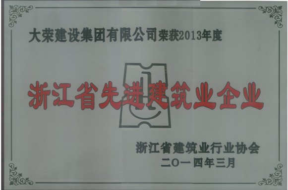恭賀大榮集團榮獲2013年度浙江省“先進建筑業(yè)企業(yè)”榮譽稱號