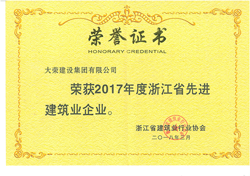 日前,從浙江省建筑業(yè)行業(yè)協(xié)會網(wǎng)站獲悉,大榮建設集團有限公司榮獲“2017年度浙江省先進建筑業(yè)企業(yè)”。